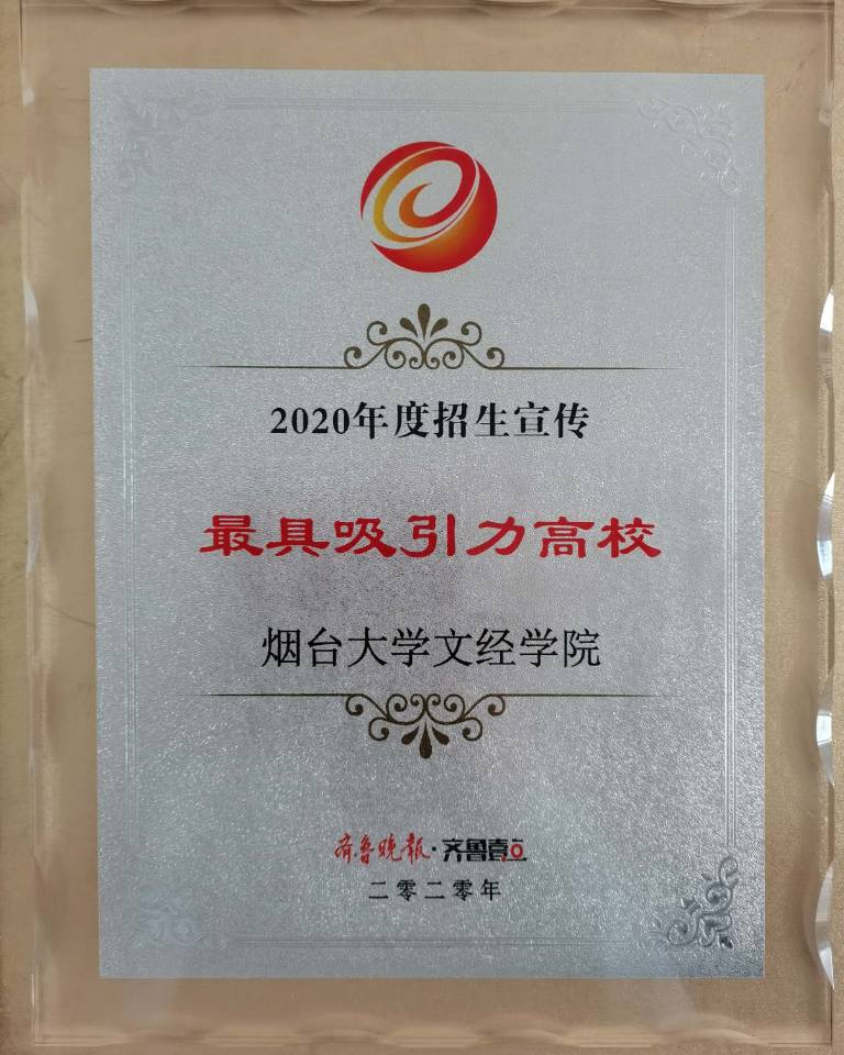 11月22日,齐鲁晚报·齐鲁壹点山东新高考圆桌论坛暨教育数据应用与传播研究中心年会和颁奖典礼在山东新闻大厦隆重举行。我院荣获2020年度招生宣传“最具吸引力高校”、毕业生“最受用人单位认可高校”。这是继2019年获招生宣传“最具公信力高校”后取得的又一殊荣。